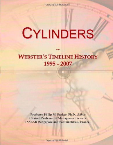 Webster's bibliographic and event-based timelines are comprehensive in scope, covering virtually all topics, geographic locations and people. They do so from a linguistic point of view, and in the case of this book, the focus is on "Cylinders," including when used in literature (e.g. all authors that might have Cylinders in their name). As such, this book represents the largest compilation of timeline events associated with Cylinders when it is used in proper noun form. Webster's timelines cover bibliographic citations, patented inventions, as well as non-conventional and alternative meanings which capture ambiguities in usage. These furthermore cover all parts of speech (possessive, institutional usage, geographic usage) and contexts, including pop culture, the arts, social sciences (linguistics, history, geography, economics, sociology, political science), business, computer science, literature, law, medicine, psychology, mathematics, chemistry, physics, biology and other physical sciences. This "data dump" results in a comprehensive set of entries for a bibliographic and/or event-based timeline on the proper name Cylinders, since editorial decisions to include or exclude events is purely a linguistic process. The resulting entries are used under license or with permission, used under "fair use" conditions, used in agreement with the original authors, or are in the public domain.